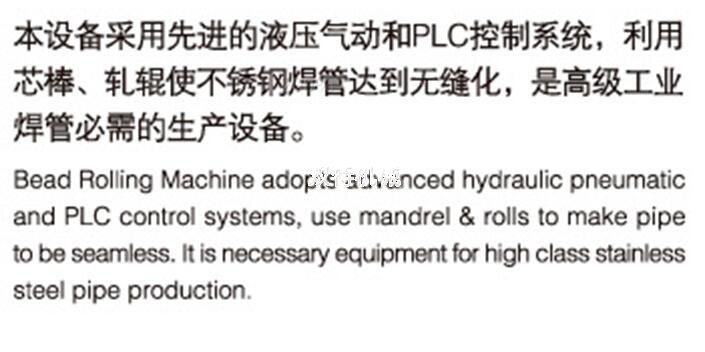 Weld leveling equipment is online processing stainless steel welded pipe weld seam synchronously welding weld seam inside and outside weld repeatedly make weld smooth with base metal transition make seam welded pipe seamless. Internal seam leveling equipment adopts plc proportional hydraulic automatic control performance stable high yield high yield convenient installation error output setting up input and production line linkage are indispensable production equipment. Internal weld seam welding machine consists of internal weld seam welding machine composed of internal and external welding machine frame hydraulic pneumatic system automatic electro hydraulic pneumatic control system controlled by PLC including mold and rolling fluid circulation equipment. Inner weld seam welding machine characteristic stainless steel welded pipe internal and external weld leveling device is a built-in mandrel and roller to stainless steel welded pipe rolling reciprocating automatic rolling device. Through controlling rolling strength and path to achieve leveling of inner and outer weld seam of stainless steel welded pipe removing residual high weld seam and flush with base metal.