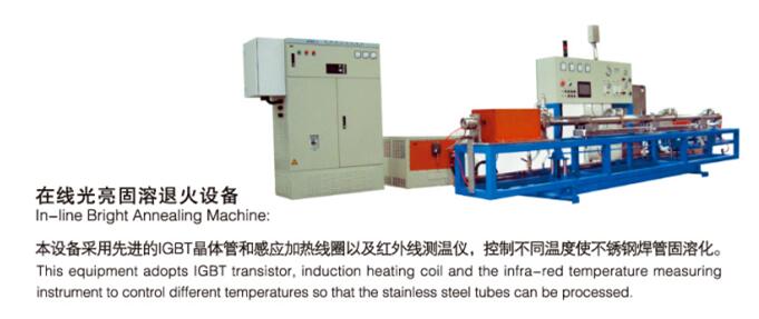 適用于將不銹鋼管Tig和激光焊接生產(chǎn)線,在線加熱至1050℃,隨后至于氫氣保護下,快速冷卻至室溫的專用設(shè)備,此設(shè)備必須安裝在定徑和校直工序之間。